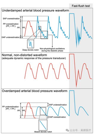 A fast-flush or square wave test can help differentiate overdamping from underdamping by observing the oscillation pattern following a brief saline flush.