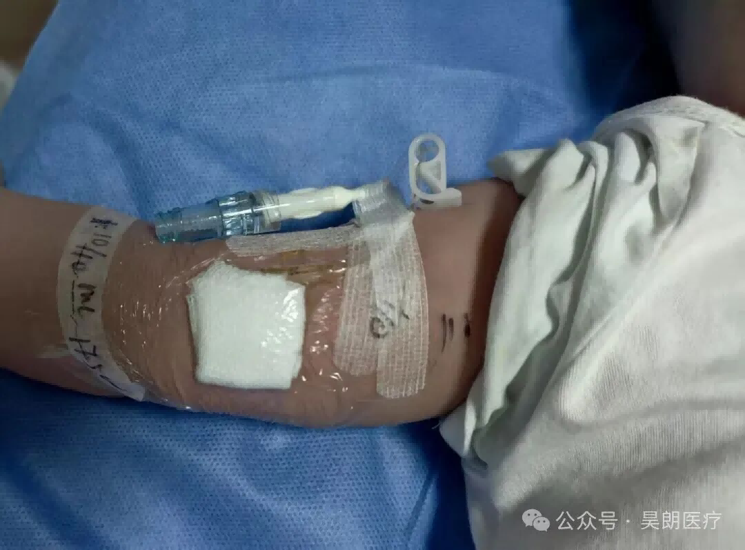 Two-year-old Miaomiao (pseudonym), a child with nephrotic syndrome, requires frequent infusions of albumin, diuretics, and biologics. Previously, each infusion required locating a new peripheral vein, and repeated venipuncture left her little hands covered with needle marks, eventually causing severe needle-related fear.