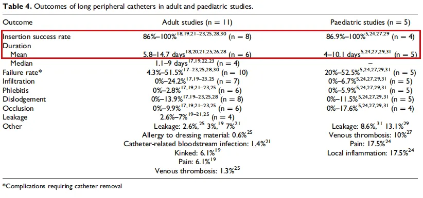Methods: Literature searches were conducted in PubMed, Scopus, Medline, Web of Science, and the Cochrane Library using the following keywords: "long," "Seldinger," "guidewire," "peripheral," "vein," "vascular," "catheterization," and "catheter."