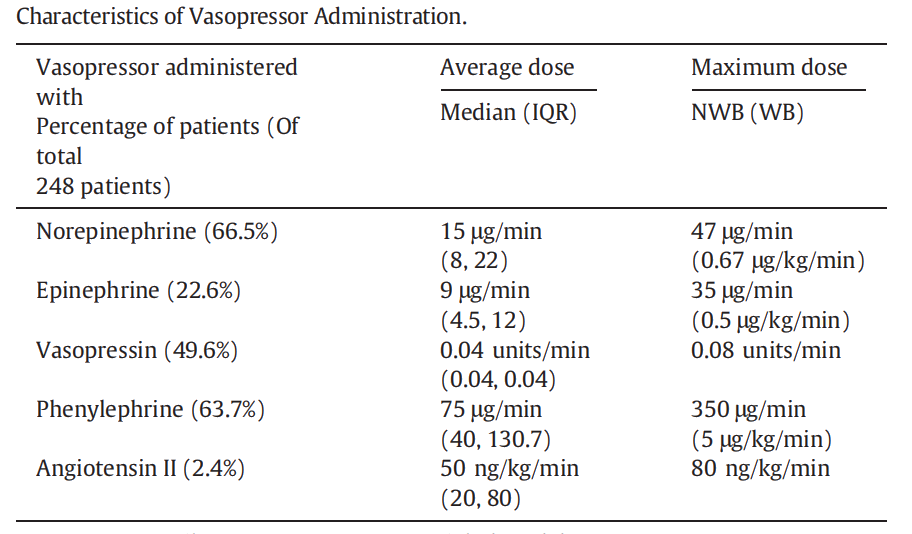 Commonly infused drugs: Norepinephrine accounted for 66.5%, and Phenylephrine accounted for 63.7%.